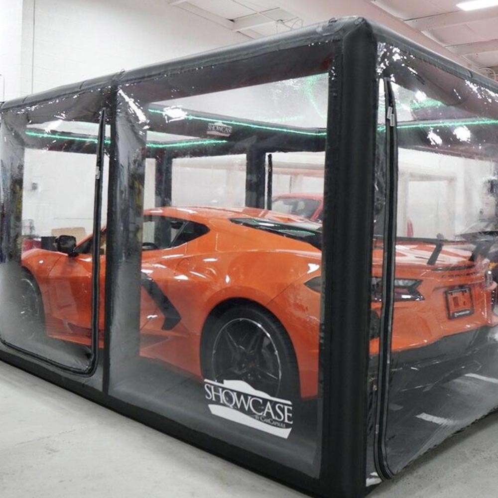 Elevate the way you protect and showcase your vehicle with the CF1 Series Showcase, meticulously designed for the discerning car enthusiast. This protective haven ensures effortless drive-in and out access, perfect for both short-term display and long-term storage. Its 0.70mm Heavy-duty PVC air chambers guard against scratches and damage without any metal interference. The brilliance of its 0.35mm PVC panels keeps your car's paint vibrant and visible, while the mildew-resistant 0.70mm PVC floor fortifies its base. And with features like a continuous filtered airflow system, a 1-year warranty, and all-inclusive accessories from a power transformer to a washable charcoal filter, investing in the CF1 isn't just about shielding against damage—it's about offering your vehicle the pinnacle of care and display. For unmatched protection, presentation, and peace of mind, choose the CF1 Series Showcase.